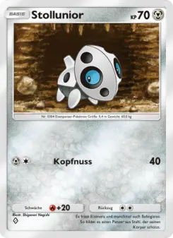 Lairon ist eine Pokemon-Karte aus dem Set Extradimensional Crisis. mit 100 KP, Typ: Metall, Entwickelt sich aus: Aron. Es liebt Eisenerz. Gruppen von ihnen kämpfen um Territorium indem sie sich gegenseitig mit ihren Stahlkörpern verprügeln.