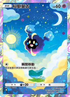 「科斯莫姆」是一張Pokemon卡,來自蒼穹守護者系列。 有 100 生命值, 屬性: Psychic, 從何進化: 科斯莫古. 古代統治阿羅拉的國王稱其為 並築壇祭祀“星之繭”。